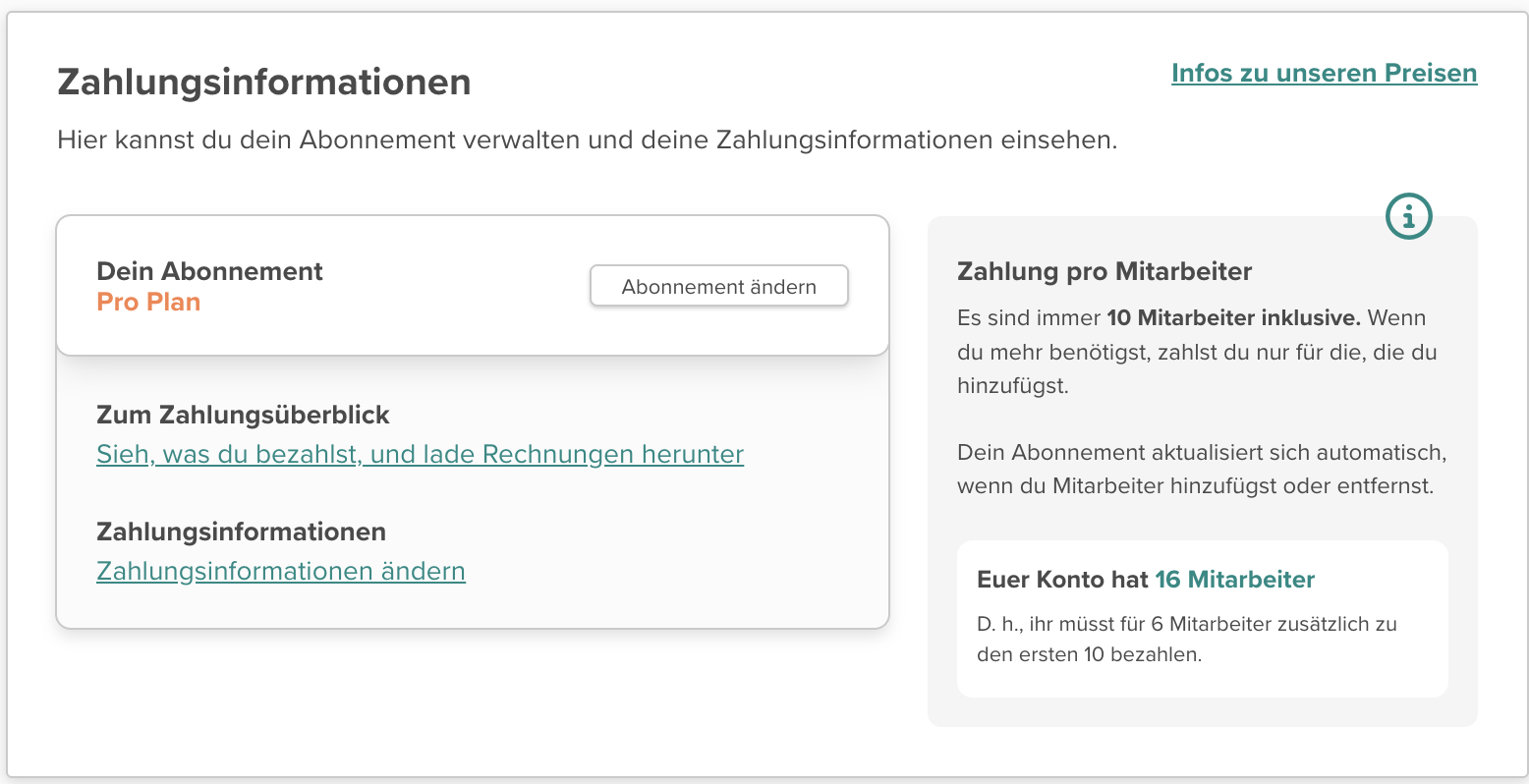 💡 Tipp: Wenn du "Zahlungsinformationen" nicht sehen kannst, überprüfe, ob du als Account-Besitzer eingeloggt bist.